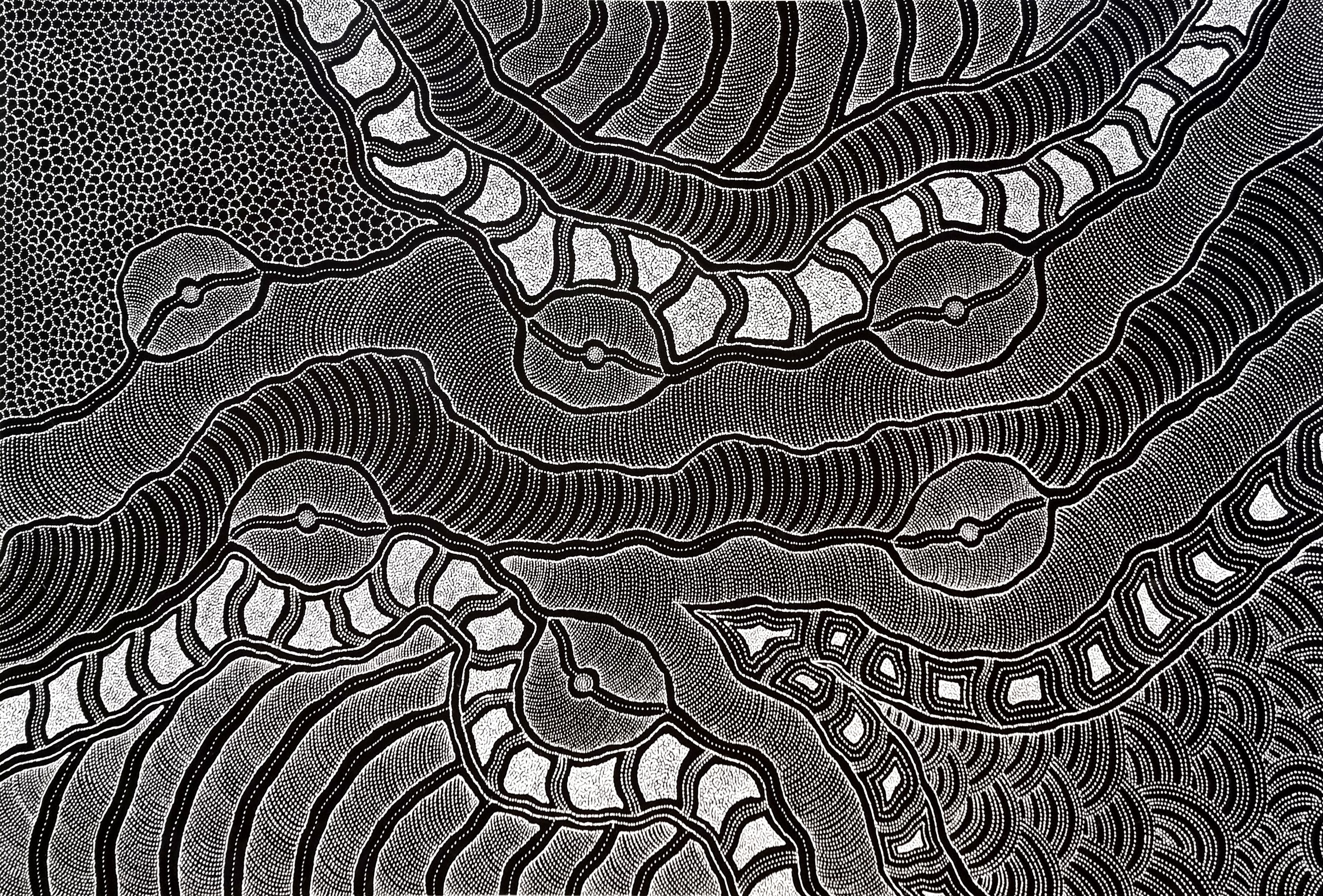 Delvine Pitjara’s work draws from her Utopian homelands and has become increasingly sought after by collectors and designers for its contemporary presence and refined palette.